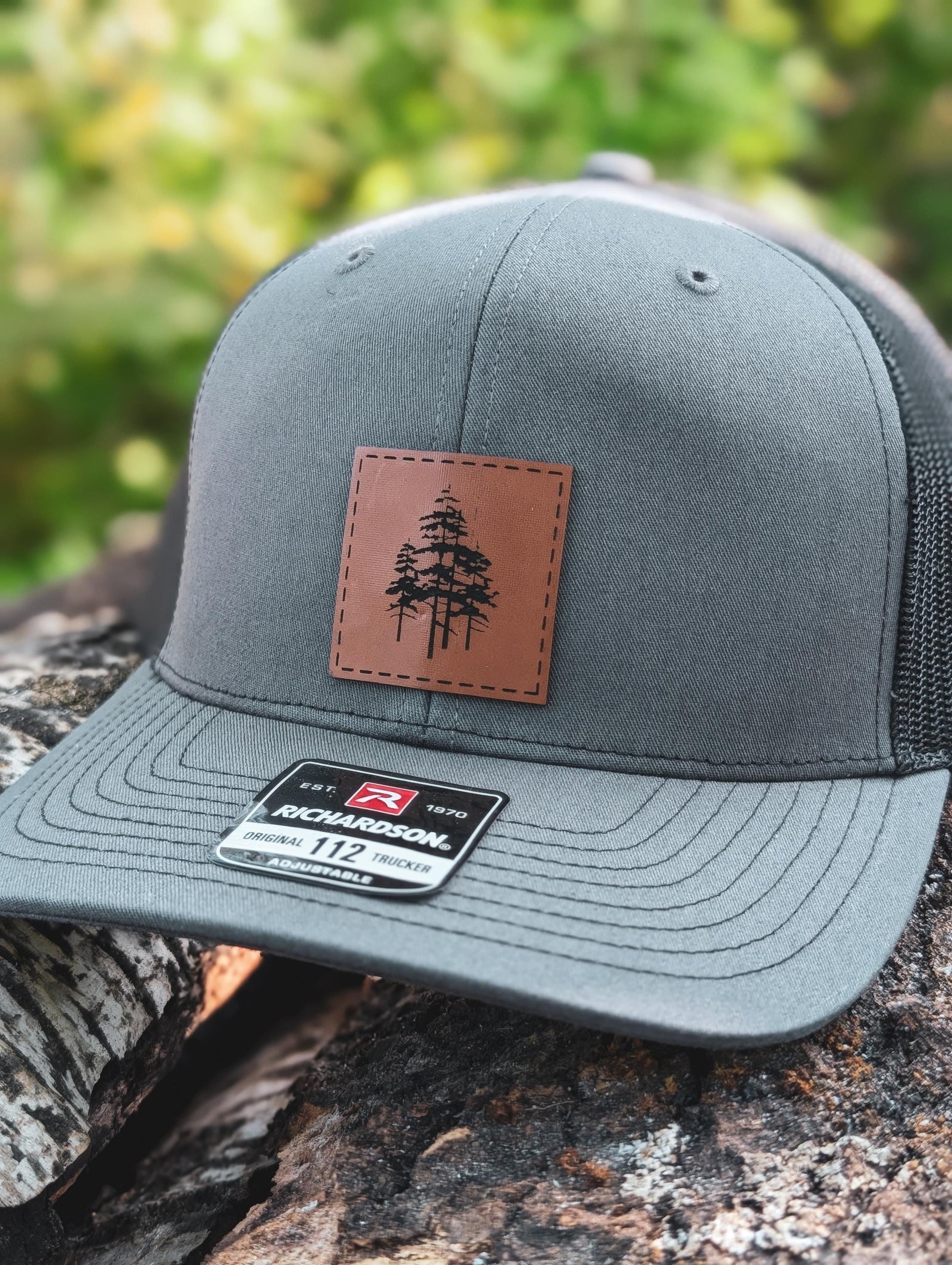 Bring the outdoors with you wherever you go with this Richardson 112 mesh back trucker hat featuring an engraved leatherette patch with a tree design. Comfortable, durable, and adventure-ready, this nature hat is perfect for hiking trails, relaxing at the cabin, or everyday wear. The breathable mesh back keeps you cool, while the adjustable snapback ensures a great fit for all-day comfort.